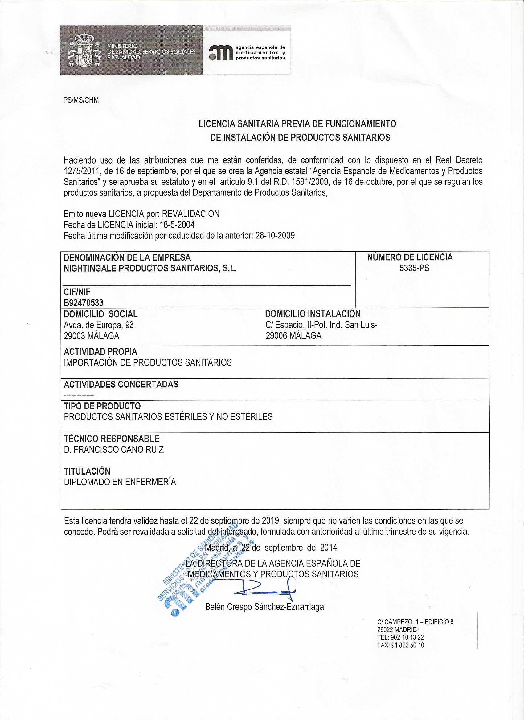 IpsoMedical comunica a sus clientes, debido a la fuerte demanda actual, que está en proceso de renovación de la “Licencia Sanitaria de Importación de Productos Sanitarios Estériles y no Estériles“. El proceso está prácticamente finalizado, la renovación de esta Licencia Sanitaria para Productos Sanitarios, permitirá expandir o aumentar su gama de productos y presencia en el mercado.