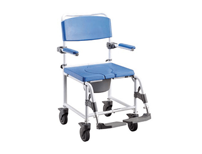 Cuenta con reposapiés y reposabrazos fabricados en poliuretano acolchado aportando una comodidad extra. Los reposapiés son desmontables y los reposabrazos abatibles facilitando el acceso al usuario. Incorpora un cubo para poder usarla como silla inodoro.