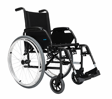 Silla de ruedas autopropulsable con frenos de acompañante y usuario.