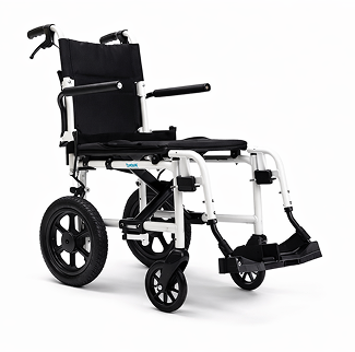 Silla de ruedas manual ligera y plegable, ideal para uso ocasional.